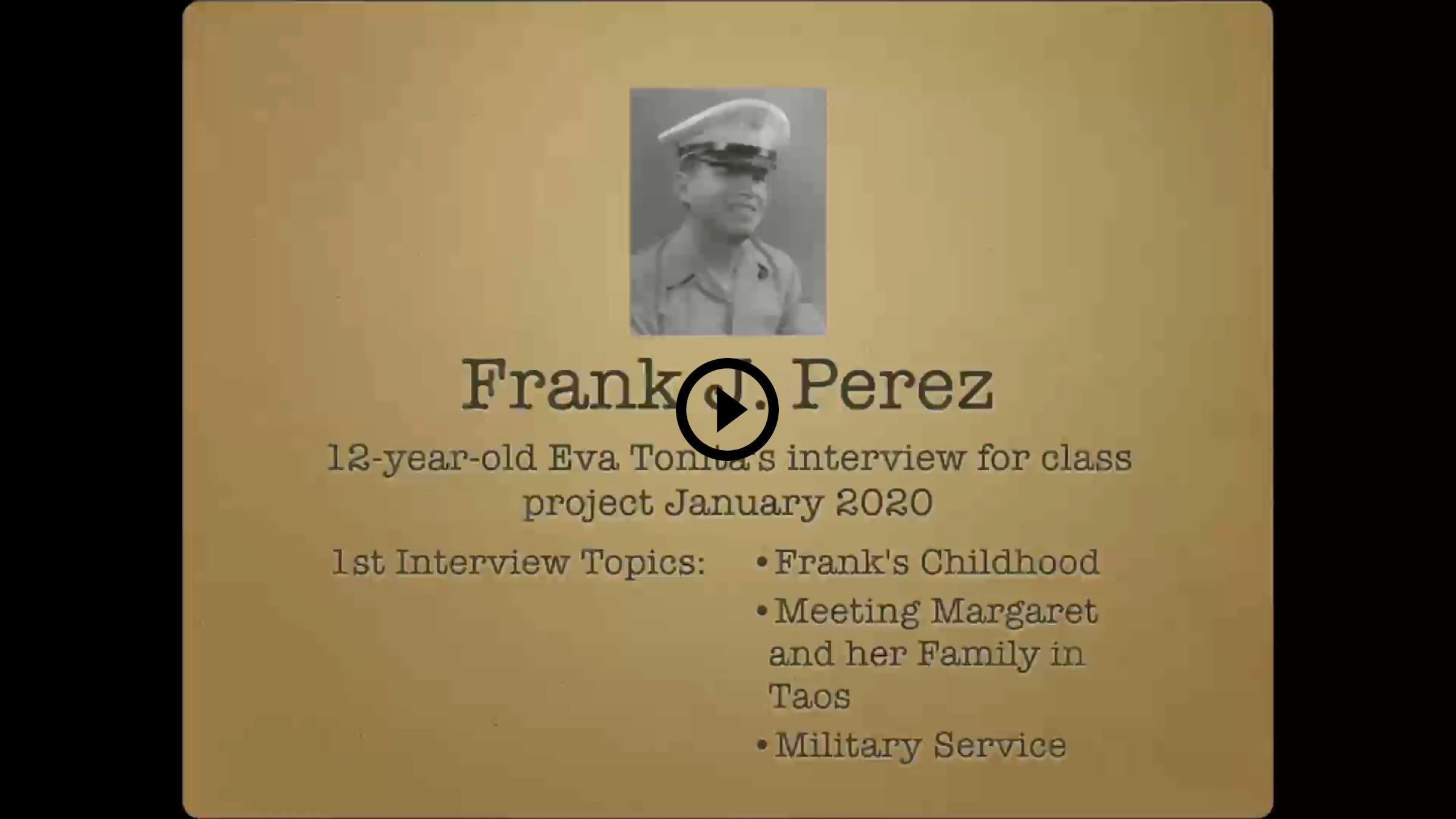Video interviews with Frank Perez, recorded in January 2020. Interviewed by his 12-year-old granddaughter, Eva Avilez.